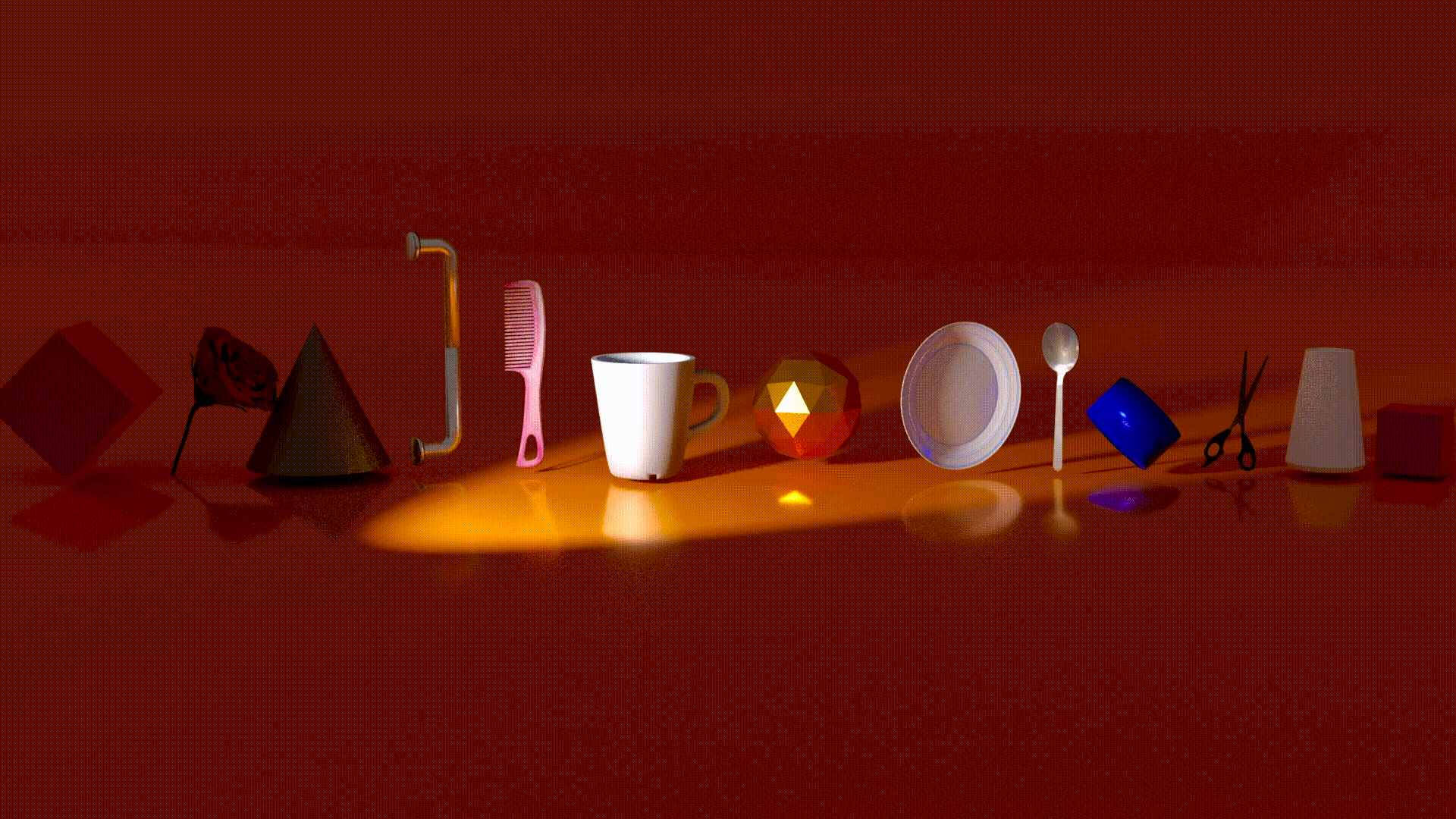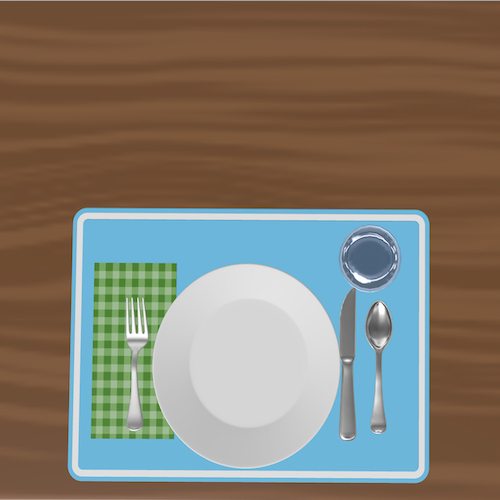Set the table by finding the feeding utensils randomly scattered on the table. The scene starts with a finished single table setting before the individual objects get randomly scattered on different locations on the table. Move your device closer to the object and follow it as it sets itself as part of the table setting.